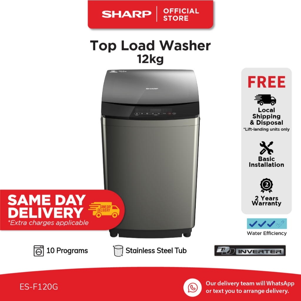 SHARP 10KG|12KG Top Load Washing Machine l ES-F100G ES-F120G(3 Ticks) l 10 Program l 2 Year Warranty + Free Delivery
