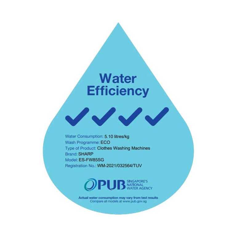 SHARP ES-FW85SG 8.5KG FRONT LOAD WASHER COLOUR: DARK GREY WATER EFFICIENCY LABEL: 4 TICKS 2 YEARS WARRANTY BY SHARP