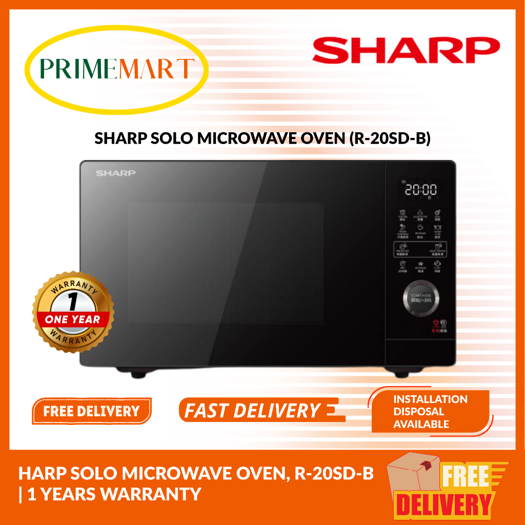 SHARP SOLO MICROWAVE OVEN R-20SD-B - 1 YEAR SHARP WARRANTY + FAST DELIVERY