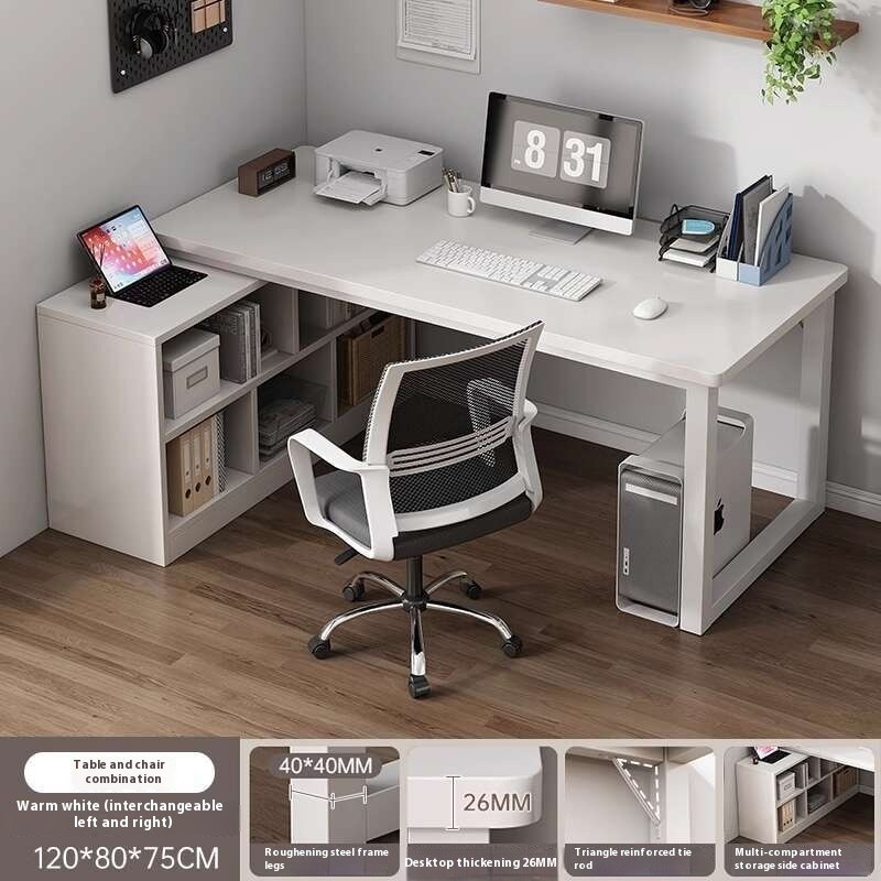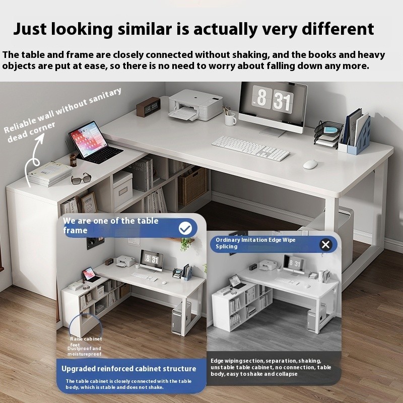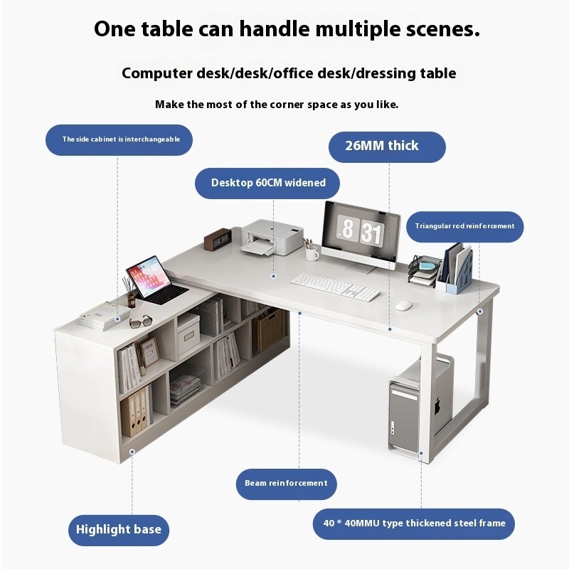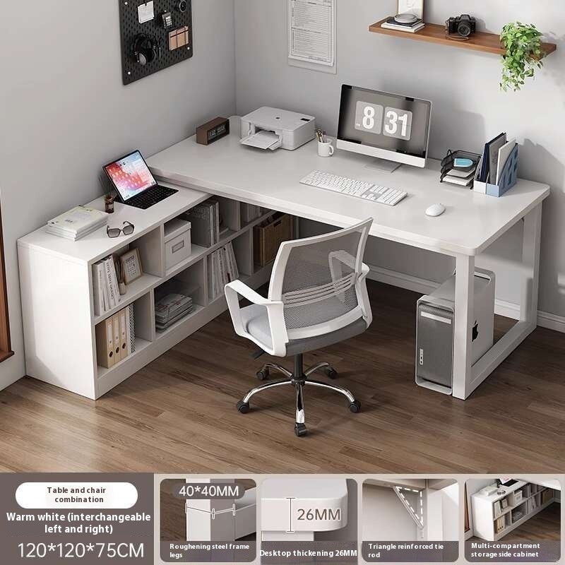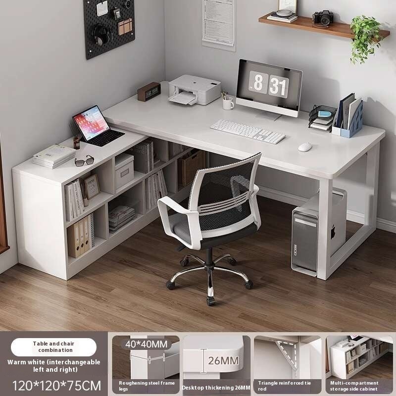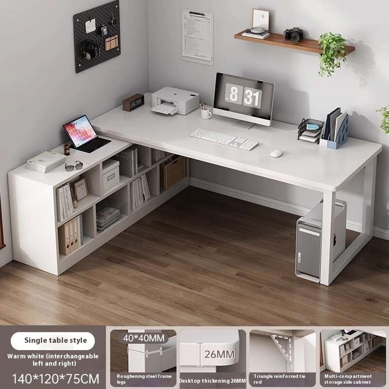 SHELFO Multifunction Computer Table Bold L Shape Table| Thickened Table + Bookshelf Corner Table Study Desk Office Table