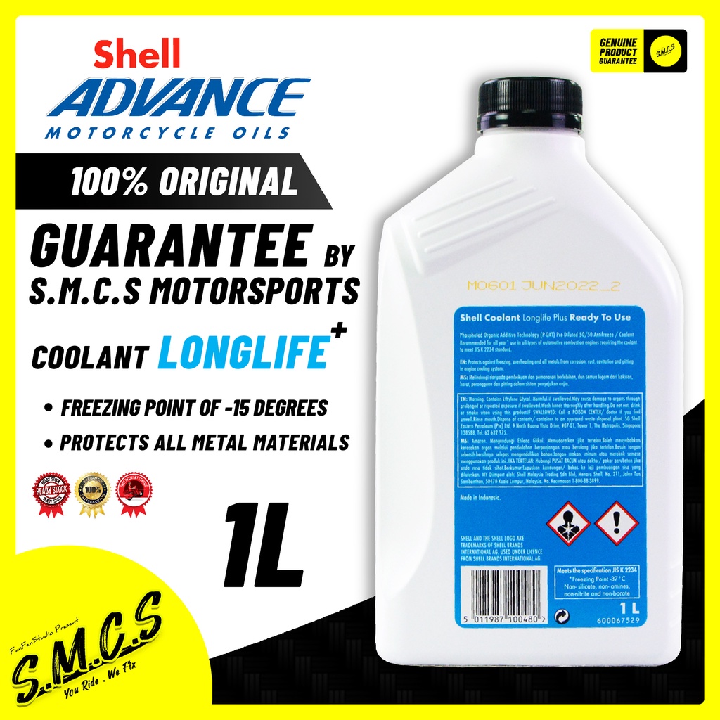 SHELL COOLANT LONGLIFE PLUS (1L) Antifreeze TO USE PENYEJUK MOTOR