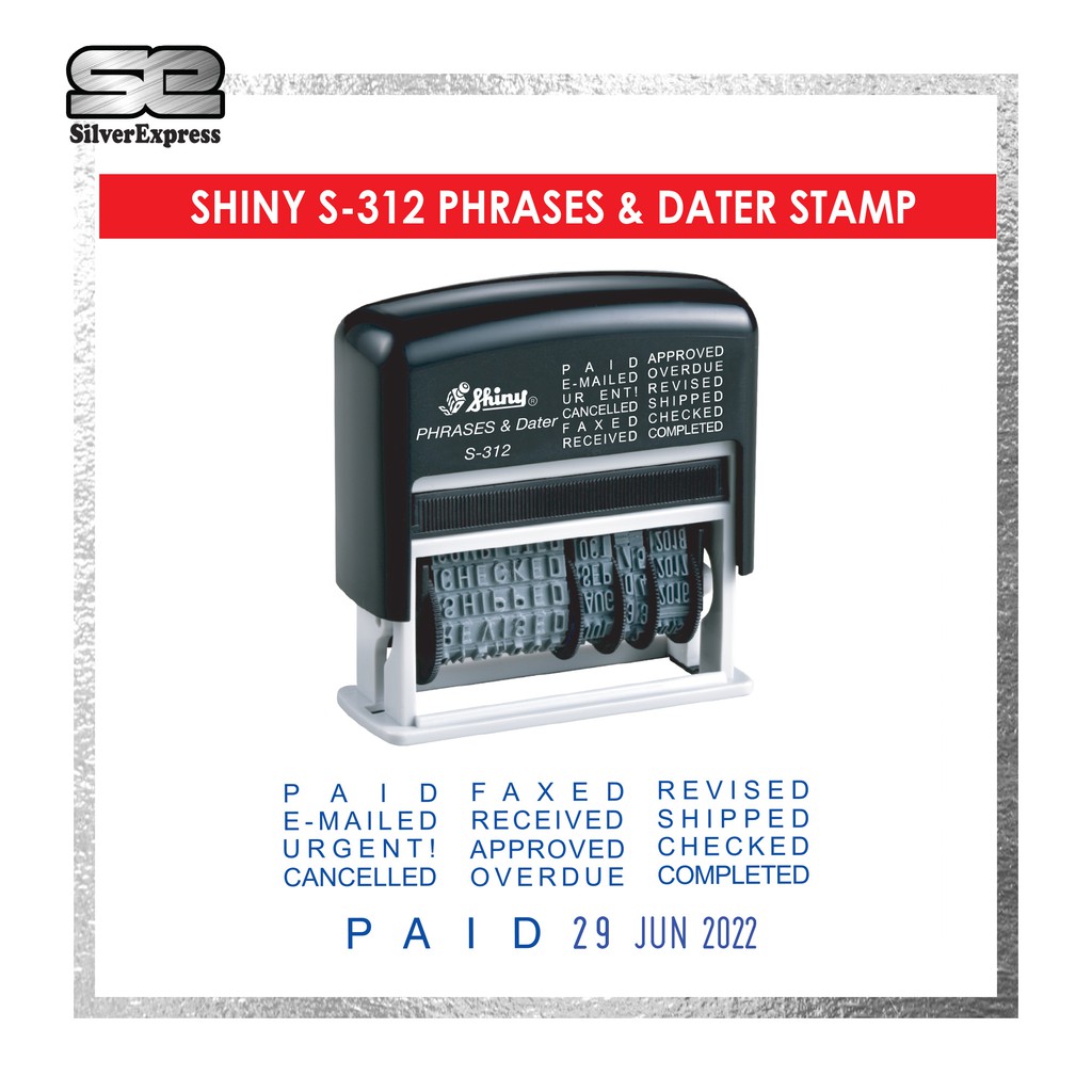 SHINY S-312 PHRASES & DATER STAMP / DATE STAMP / SELF INKING / RUBBER STAMP /INSTANT RUBBER STAMP