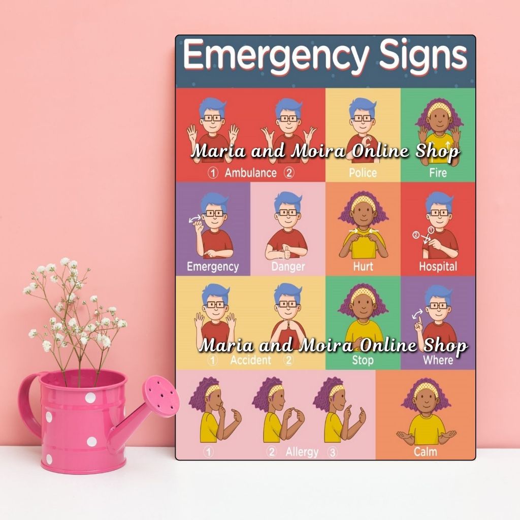 SIGN LANGUAGE CHARTS | Laminated & A4 Size | Educational ASL Poster Wall Charts for Kids