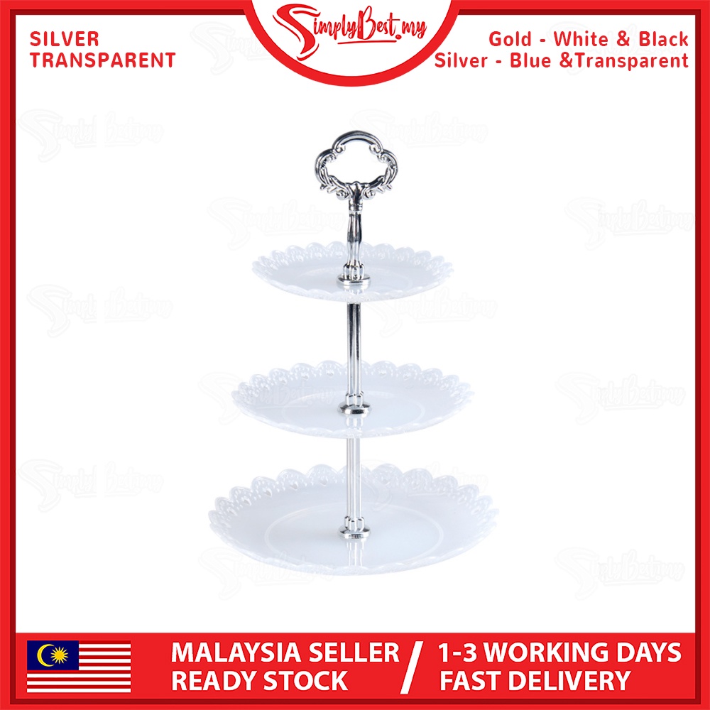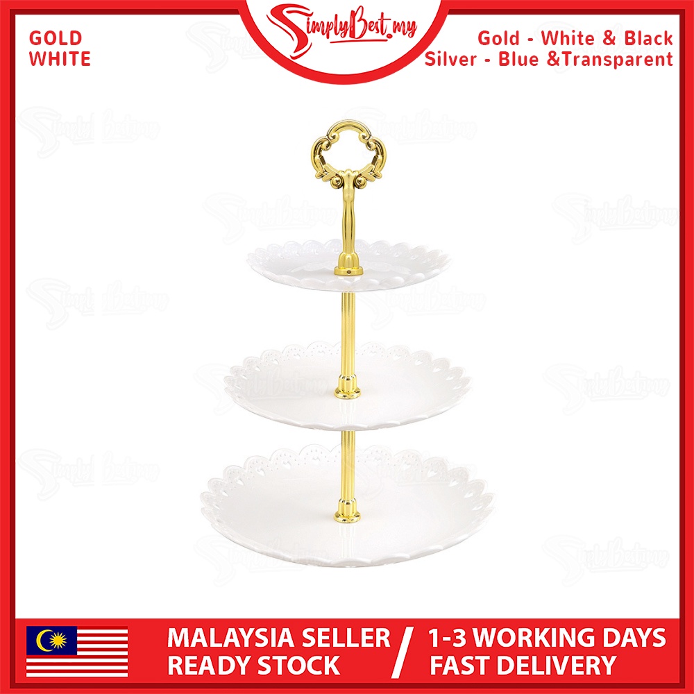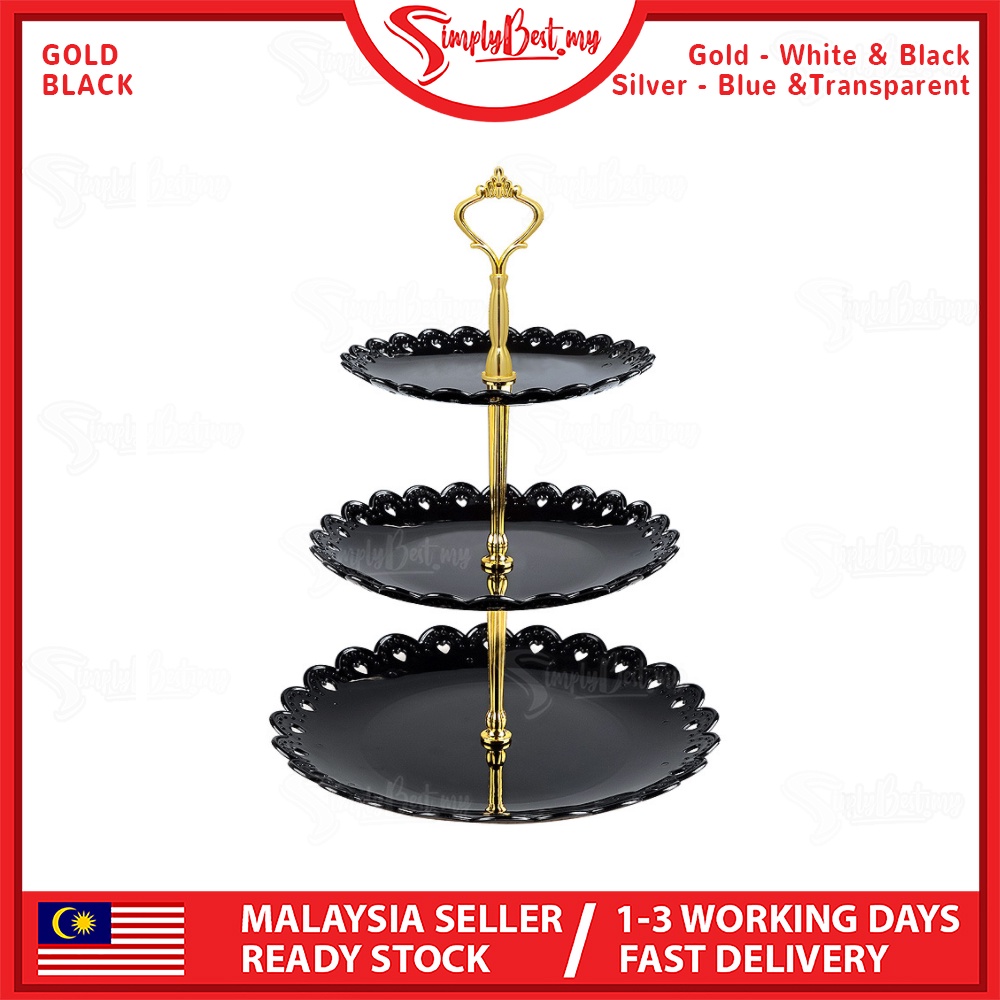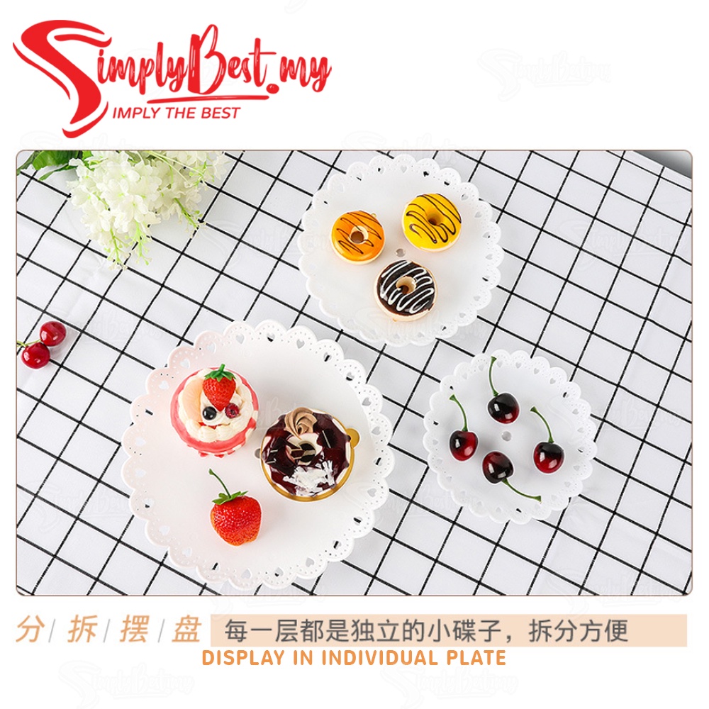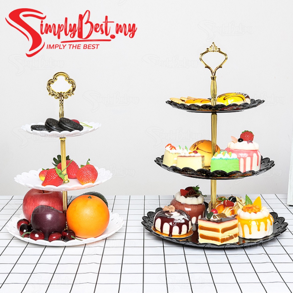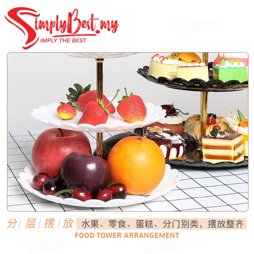 SIMPLYBEST 3 Tier High Tea Stand Dessert Plates Plastic Cupcake Tea Party Serving Platter Stand Pastry Tray Food Tower