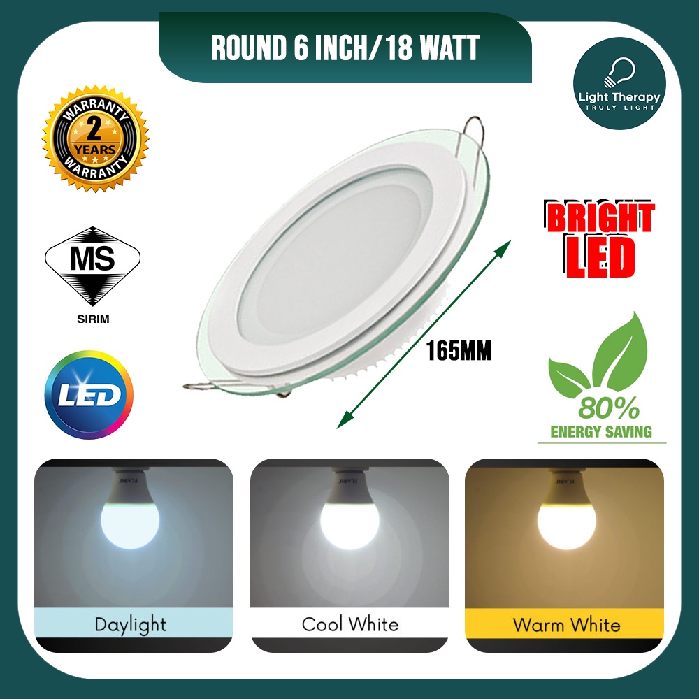SIRIM Glass LED Downlight 4"/12W 6"/18W Round Square Recessed Glass Downlight Lampu Downlight Tanam Plaster Ceiling