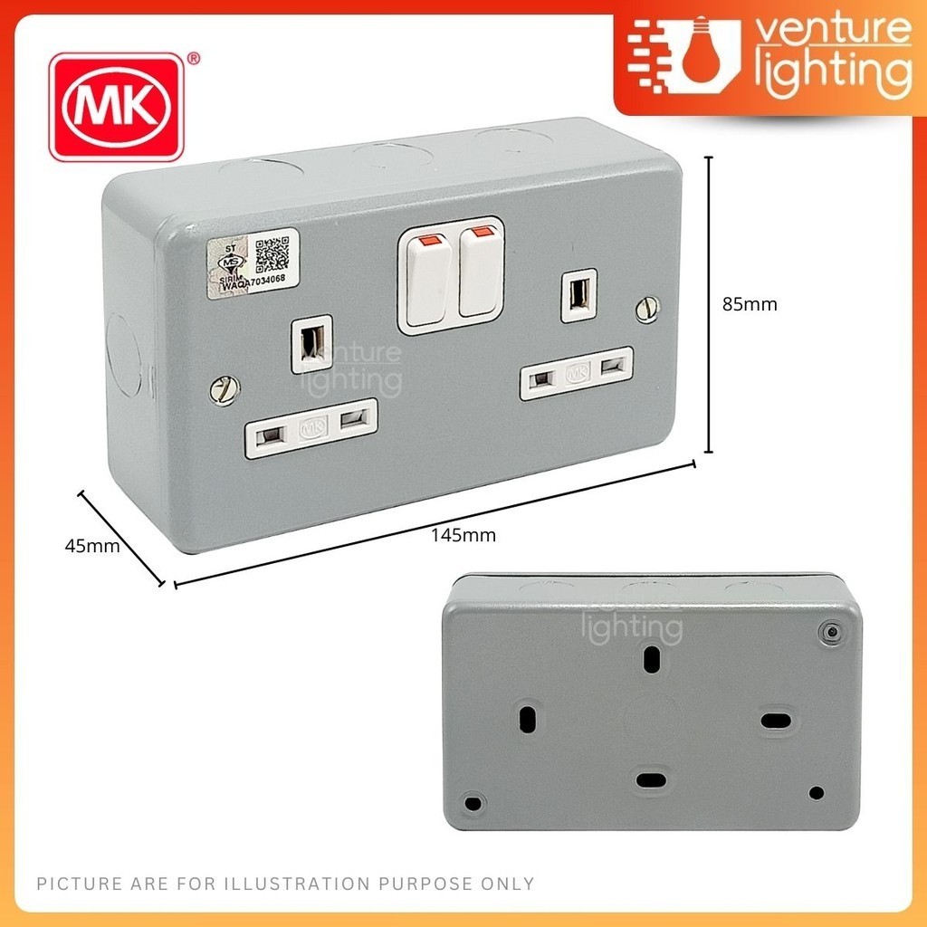 SIRIM MK Metal Clad Switch Heavy Duty Socket 13A Switch Socket Outlet Suis Soket Industrial Socket Double Switch Socket