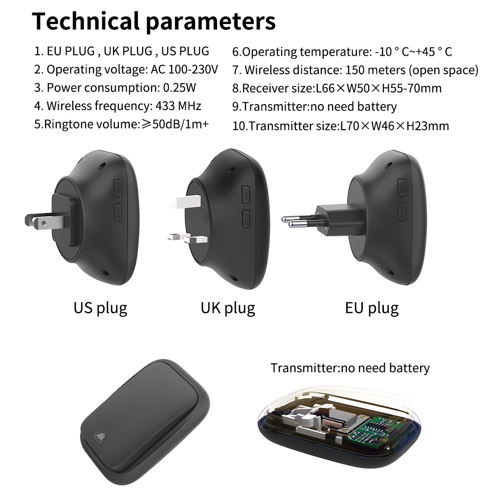 SIXWGH Wireless doorbell No need battery Waterproof door bell