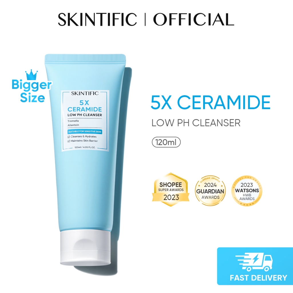 [Best Seller] SKINTIFIC 5X Ceramide Low pH Cleanser Facial Wash Gentle Cleanser For All Skin Type (80ml/120ml)