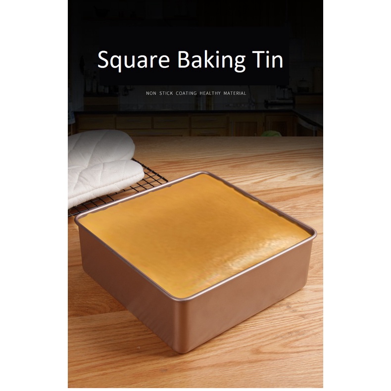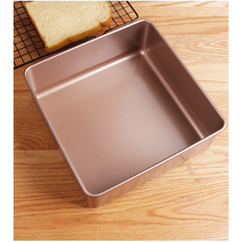 SM084 Extra Thick Non-stick 6-inch 8-inch 9-inch Gold Square Baking Tin Castella Cake Mould