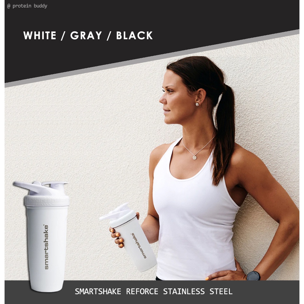 SMARTSHAKE Reforce Lightweight Stainless Steel Protein Shaker Bottle 900ML Non-Insulated