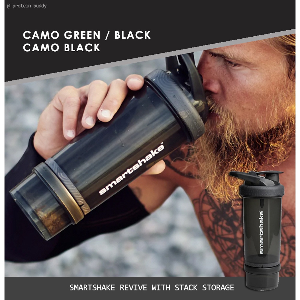SMARTSHAKE Revive Protein Shaker 750ml Shaker Bottle w/ Detachable Storage Compartment
