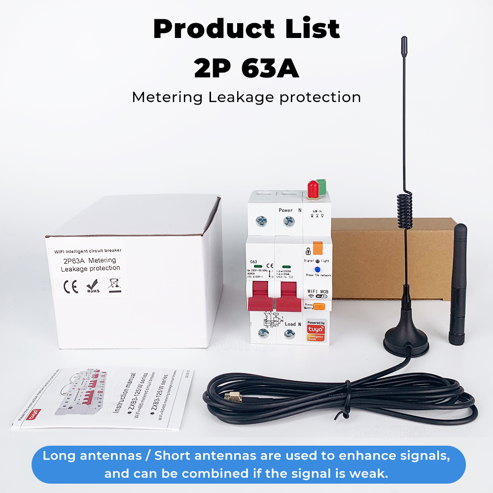 SMATRUL 63A Tuya Wifi Smart Circuit Breaker Short Circuit Protection Timed Smart Reclosing Switch Remote Control