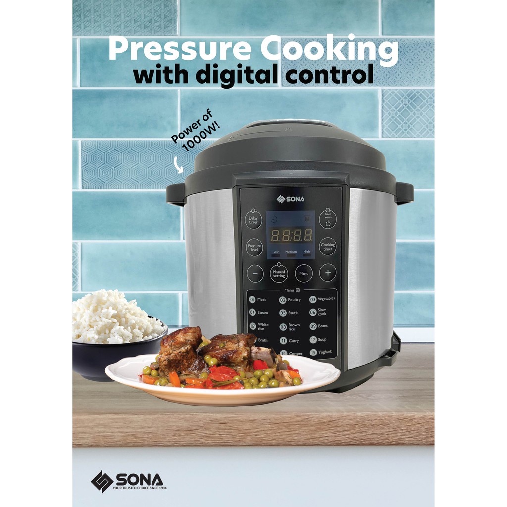 SONA 6.0L Smart Multi Cooker SPC 2503 ( Electric Pressure cooker , Dual Pot Non Stick Inner Pot )