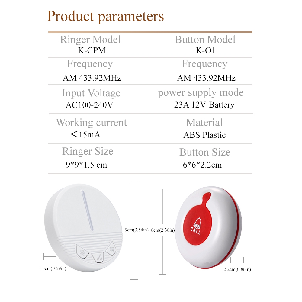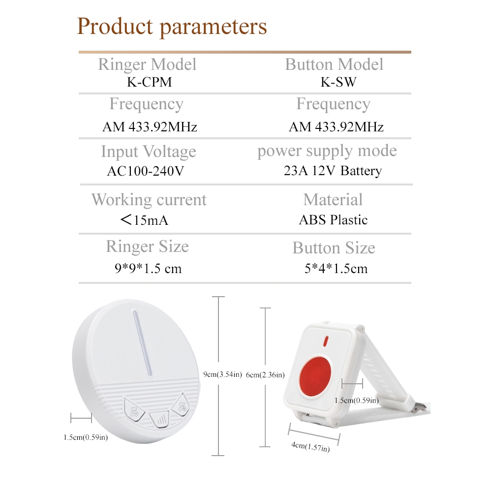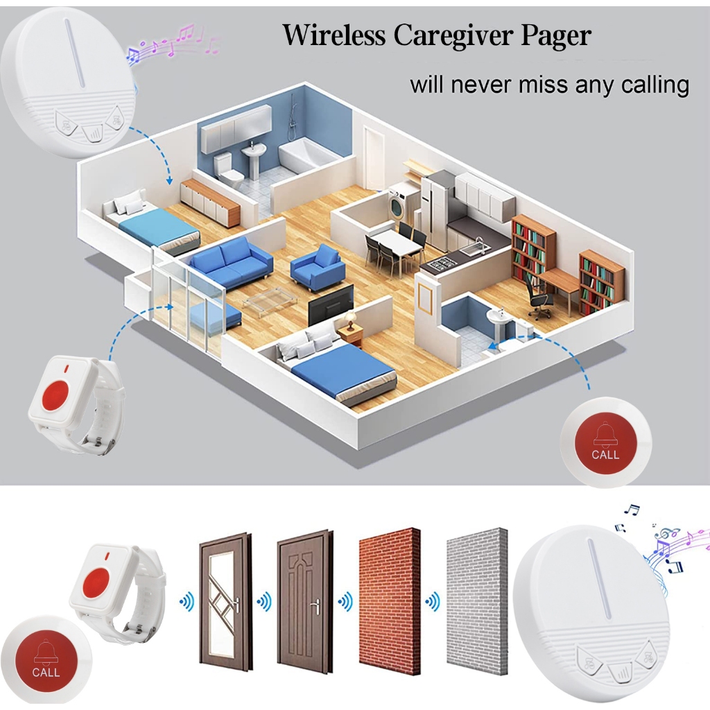 SOS Button Call Bell for Elderly Caregiver Pager Wireless Calling System Pager Waterproof SOS Call Button Nurse Calling Alert Patient Help System 650 feets Range for Home/Elderly/P
