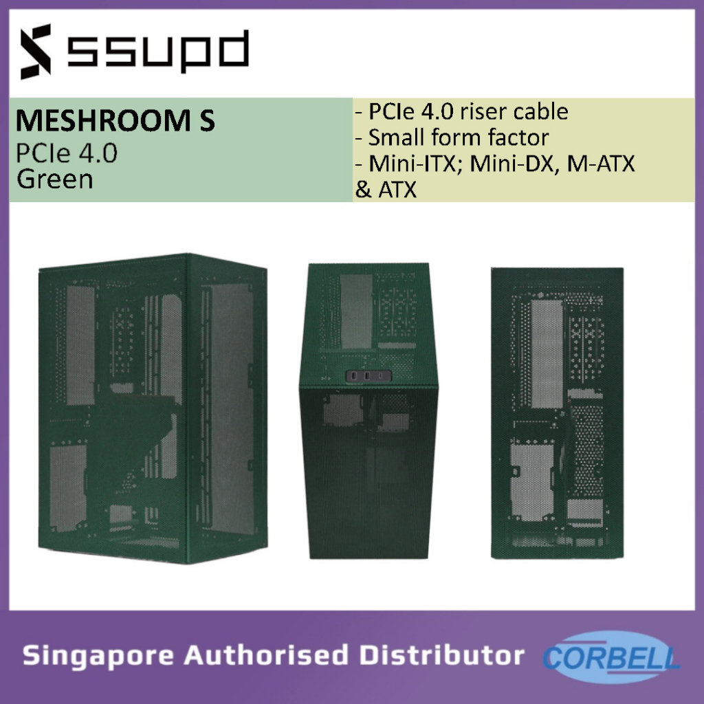 SSUPD Meshroom S V1 Mesh Desktop Small Chassis Casing Mini-itx, M-atx and atx PCIe 4.0 (Black, Gray, Green, Blue)