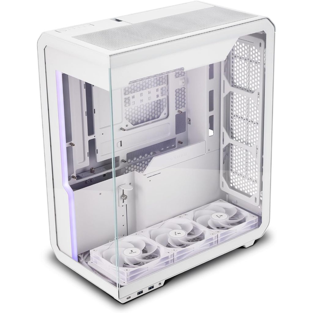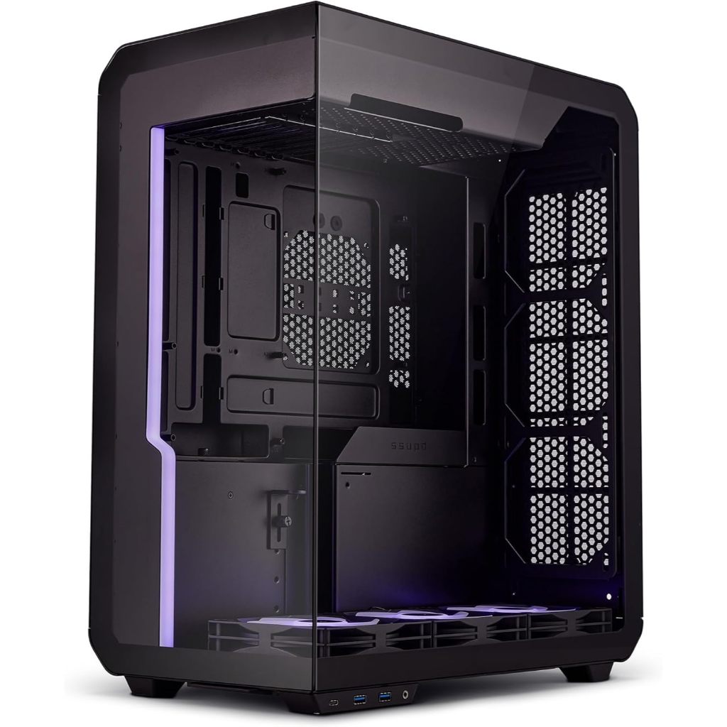 SSUPD Xhuttle ATX Mid Tower Gaming Desktop PC Case Casing , Dual Chamber, Tempered Glass/Steel, 3 x 120mm ARGB Reverse Fan, RGB Strip, Vertical GPU Airflow