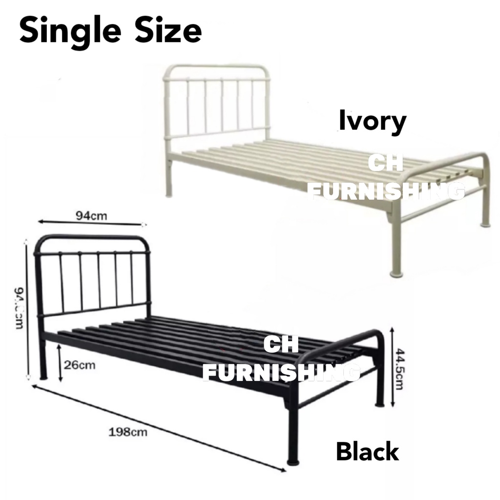 STRONGSUPPORT BASE METAL BED FRAME / SINGLE SUPER SINGLE QUEEN KING SIZE BEDFRAME BLACK / IVORY WHITE COLOUR