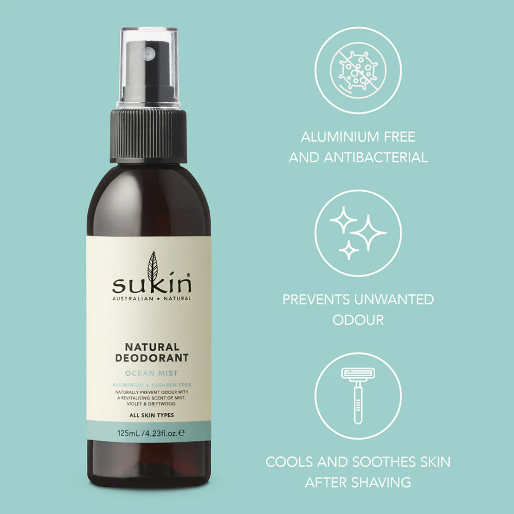 Sukin Natural Deodorant 125ml with Aloe Vera & Citrus for long-lasting freshness - Signature|Ocean Mist|Fresh Cotton