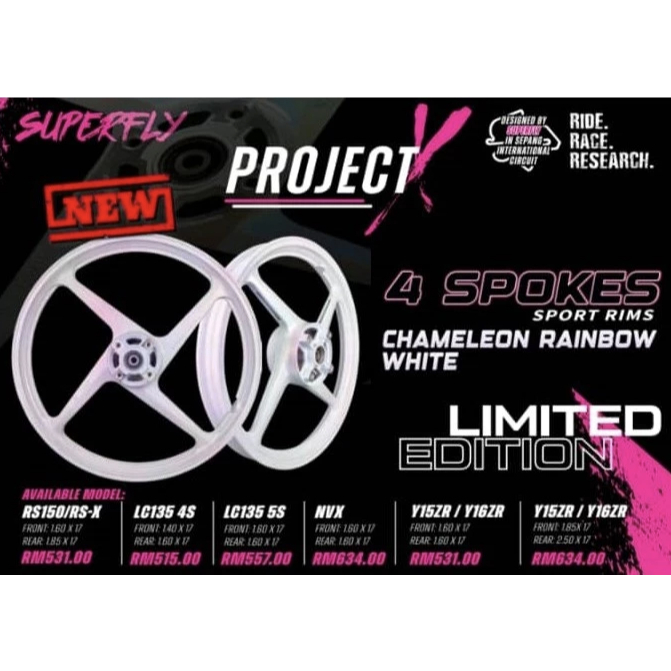 SUPERFLY PROJECT X 4 SPOKE SPORT RIMS (RAINBOW WHITE) MOTORCYCLE Y16/Y15/SNIPER/NMAX/AEROX/T135/JUPITER 5