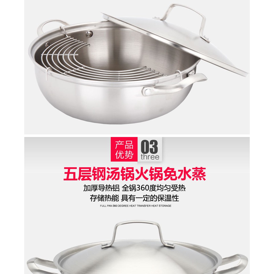 SUS304 5ply Taiban Stainless Steel 30cm 32cm High Quality 304 Stainless Steel Steam Multi-Purpose Hot Pot