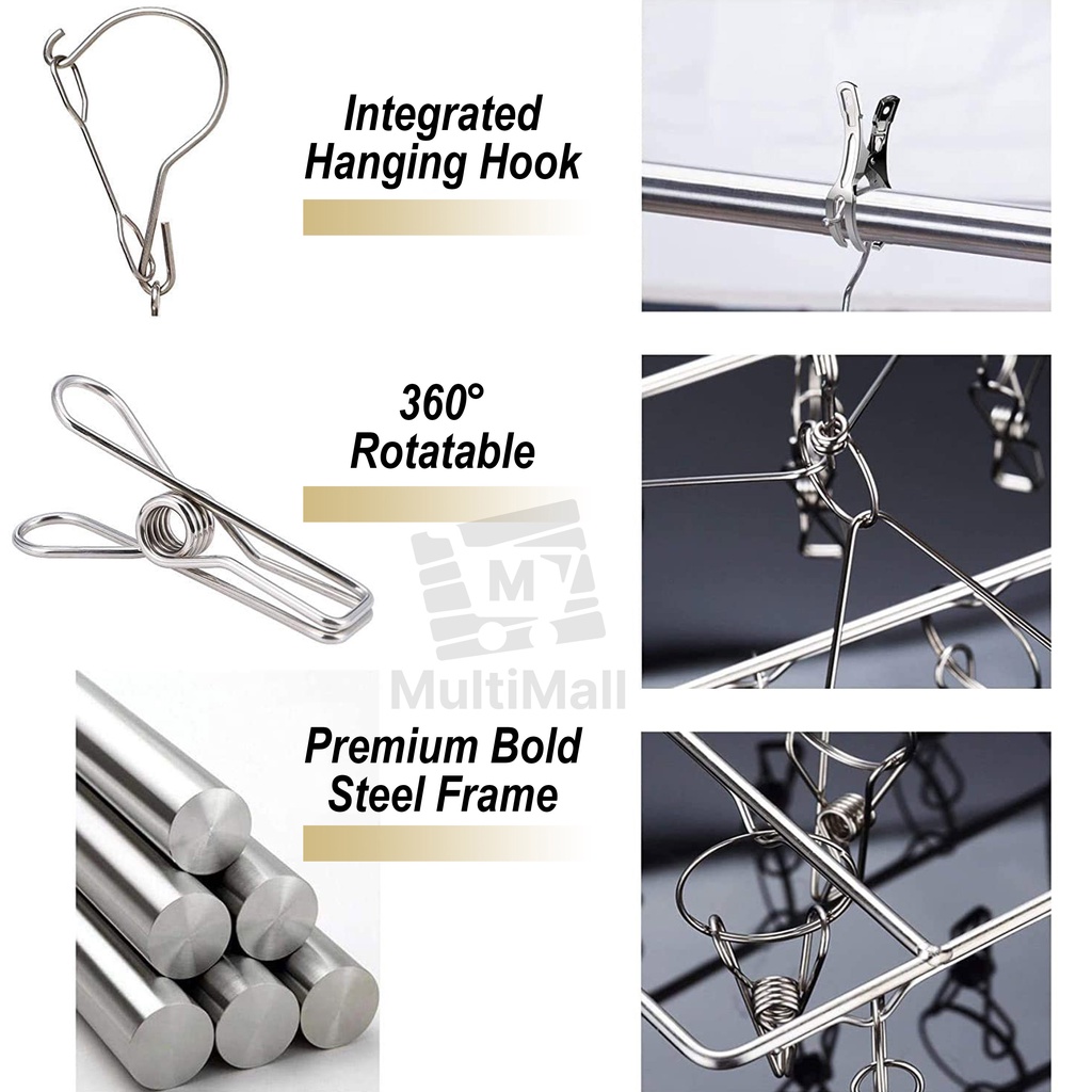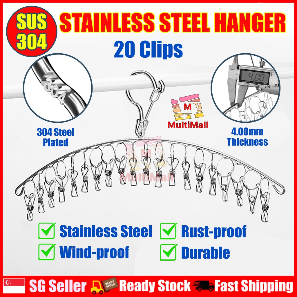 SUS304 Stainless Steel Hanger Clips |Laundry hanger with clips | Windproof Drying Clips Hanger