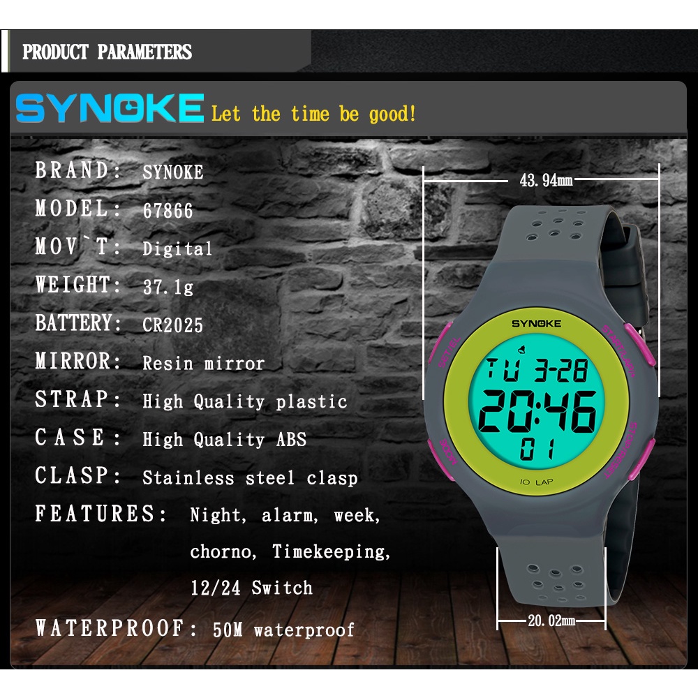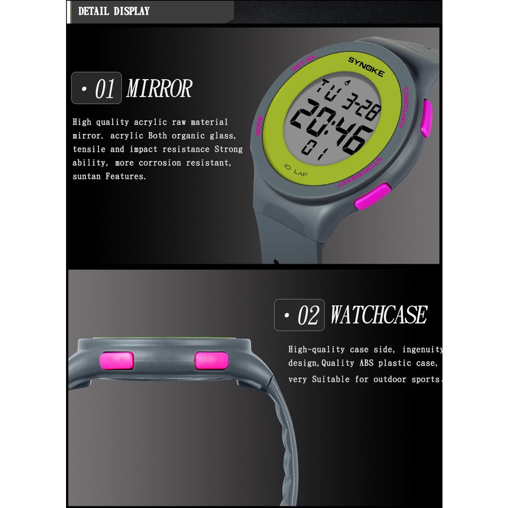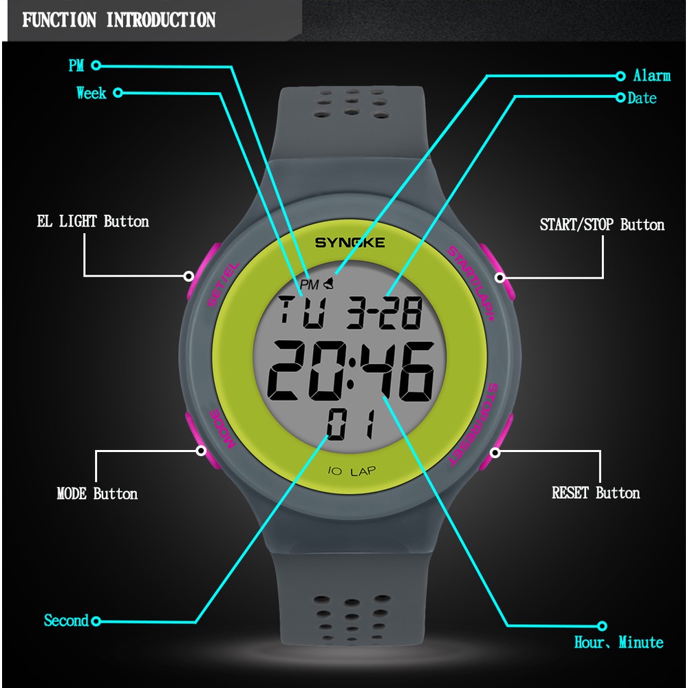 SYNOKE Men Watch 30M Waterproof Military LED Display Multifunctional Alarm Clock Digital Sports Watches