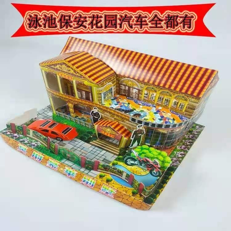 Sacrificial Sacrificial Paper Tie Finished Product Large Villa Car Building House Ming Coin Burning Paper Ingot Anniversary Qingming 57 Upper Grave/Quan Shield Home Living