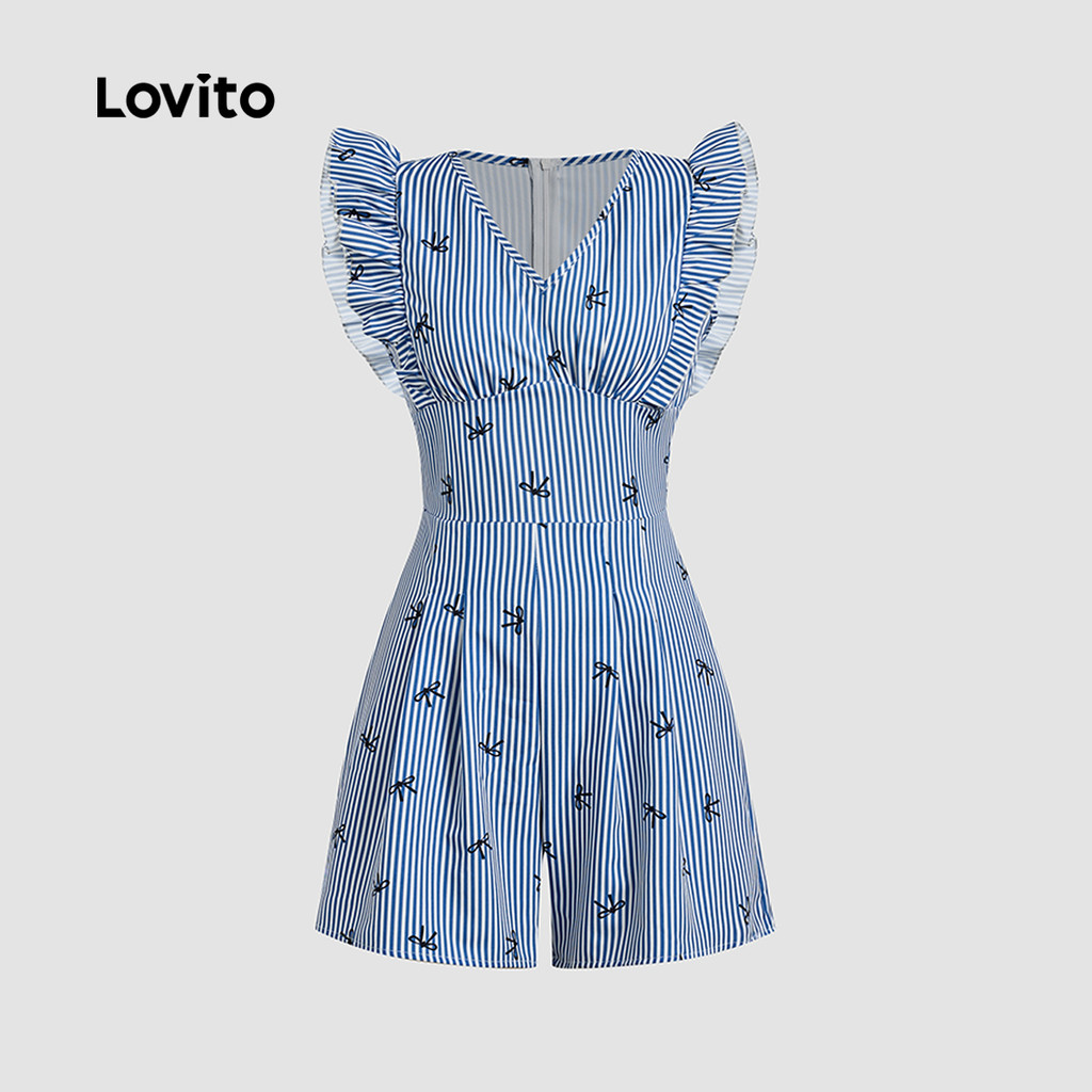 Lovito Casual Jumpsuit Zipper Spring/summer Blue Jumpsuit for Women L157ED356