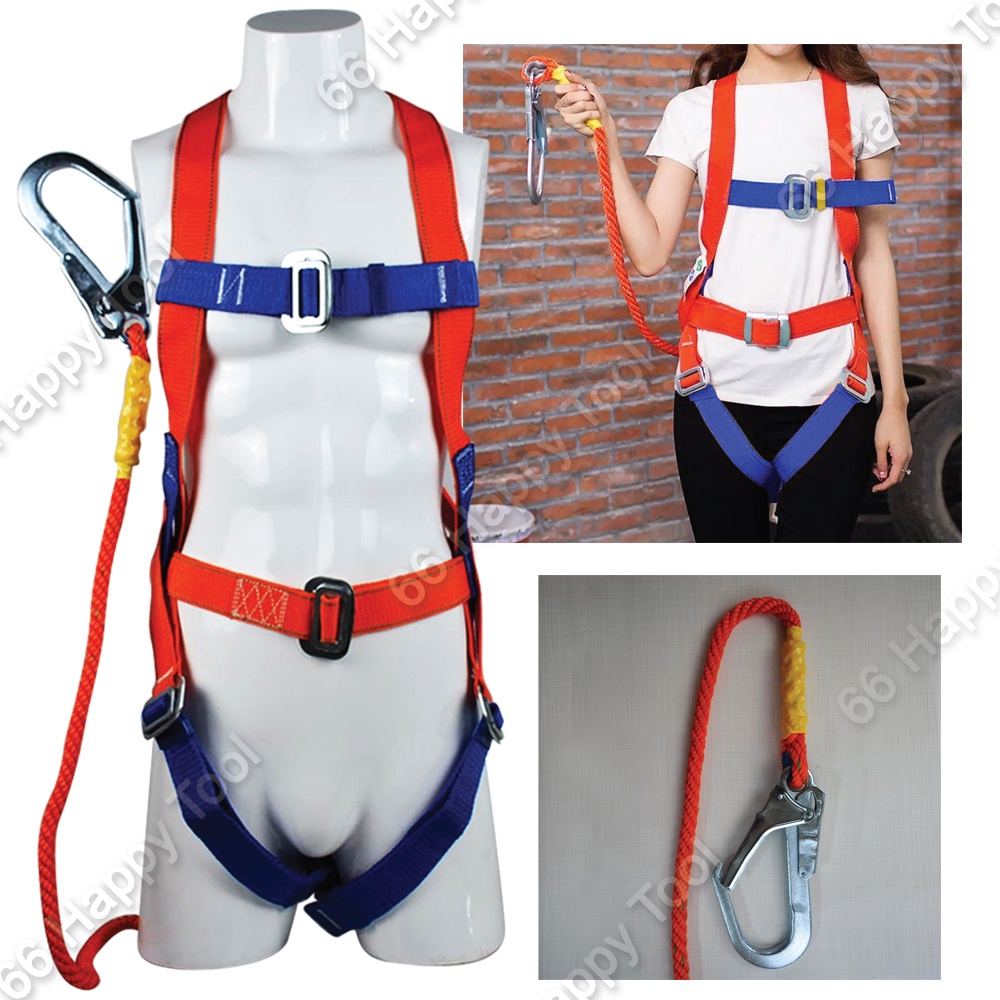 Safety Harness Fall Protection Absorber Parachute Type Polyamide Lanyard Double Large D-Hook Elastic Full Body Belt