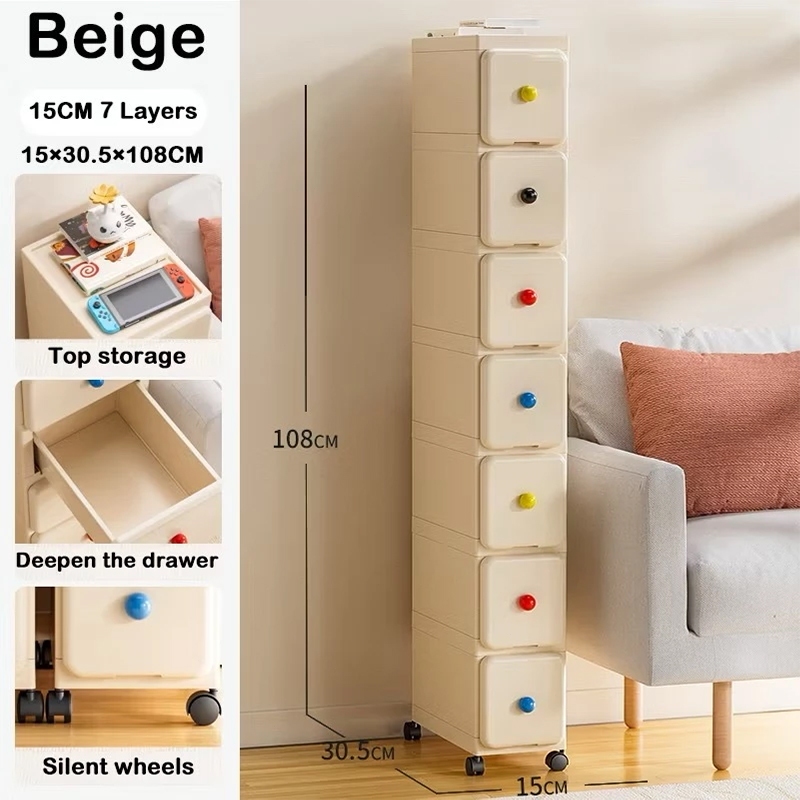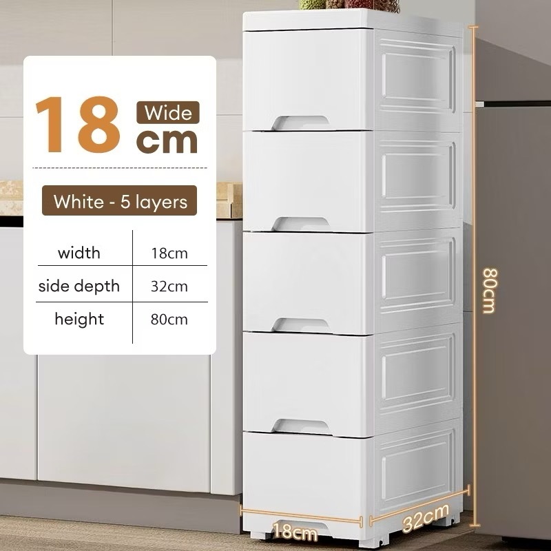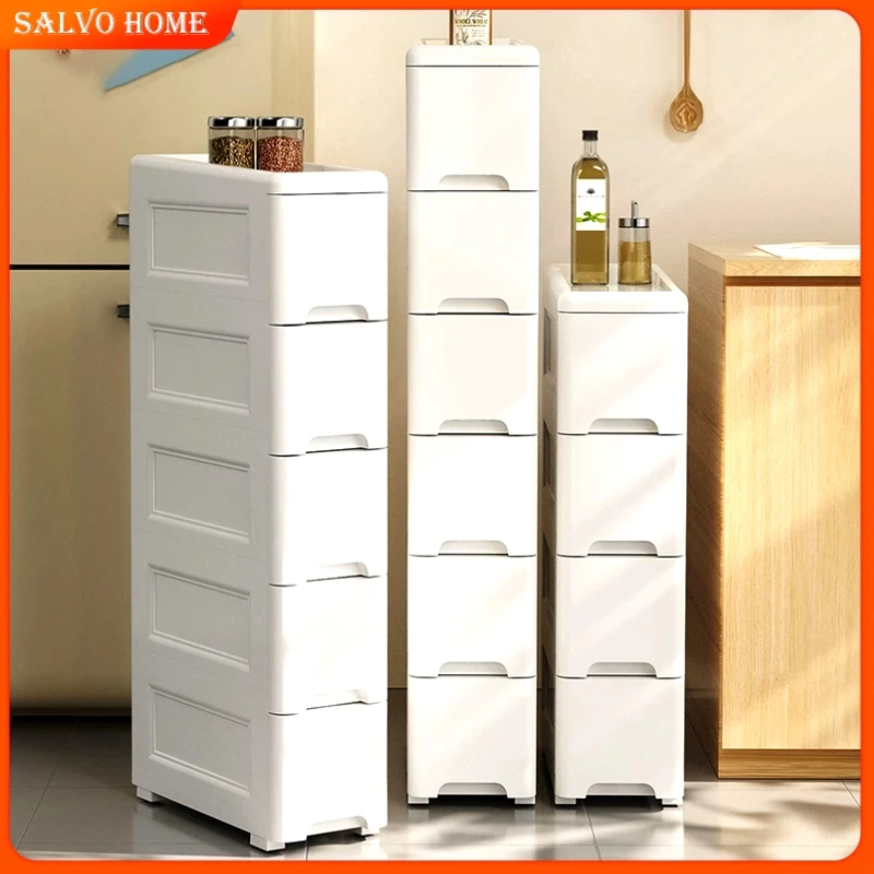 Salvo L25cm 3-7 Layers Kitchen Organizer Slim Drawer Storage Cabinet Gap Kitchen Cabinet Mobile Drawer Cabinet