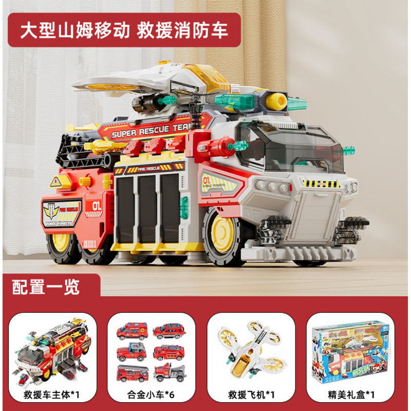Sam's multifunctional rescue fire truck toy large police car alloy sound and light water spray ejection track puzzle boy
