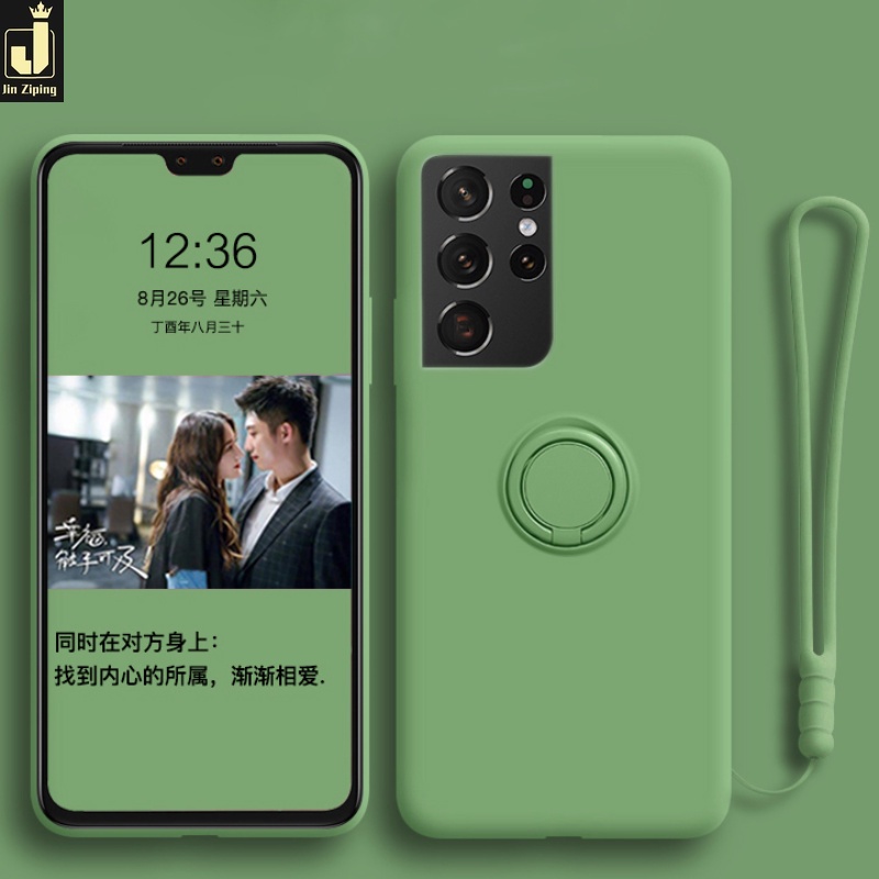 Samsung Galaxy Note 20 Note 10 Note 9 Plus Casing Luxury Liquid Silicone Phone Case Galaxy Note 20 Ultra Shell With Magnetic Ring Holder Cover Free Lanyard