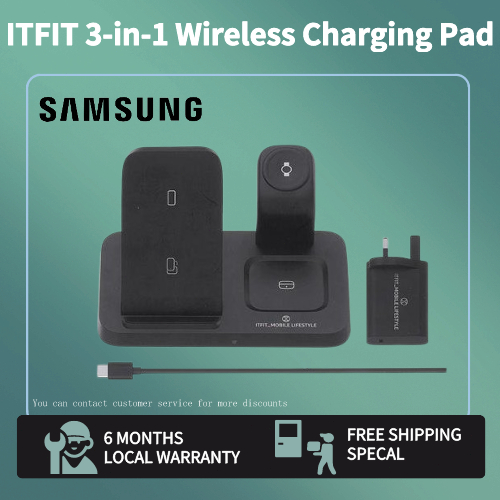 Samsung ITFIT 3-in-1 Wireless Charging Pad (with 30W UK Plug Travel Adaptor)