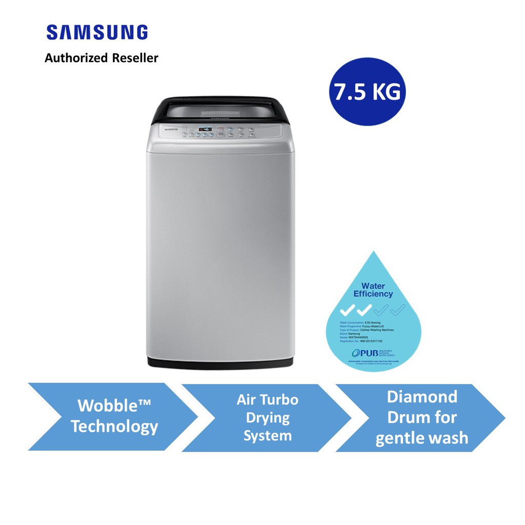 Samsung WA75H4400SS/SP Top Load 7.5kg Washer with Diamond Drum | No Dryer Function with 2 years Agent Warranty