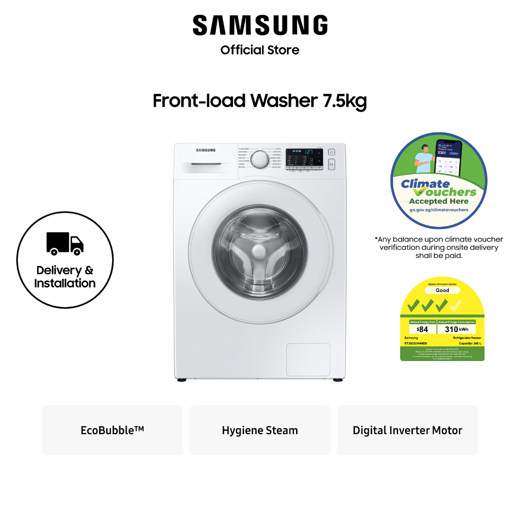 [Climate Voucher Eligible] Samsung WW75TA046TE/SP, Front Load Washing Machine, 7.5KG, 4 Ticks, with EcoBubbl