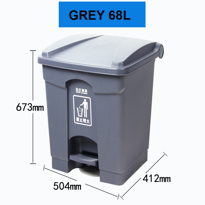 San Seng 30L/45L/68L Heavy Duty Plastic Pedal Dustbin Trash Bin for F&B/Office/Toilets/Hospital/Homes