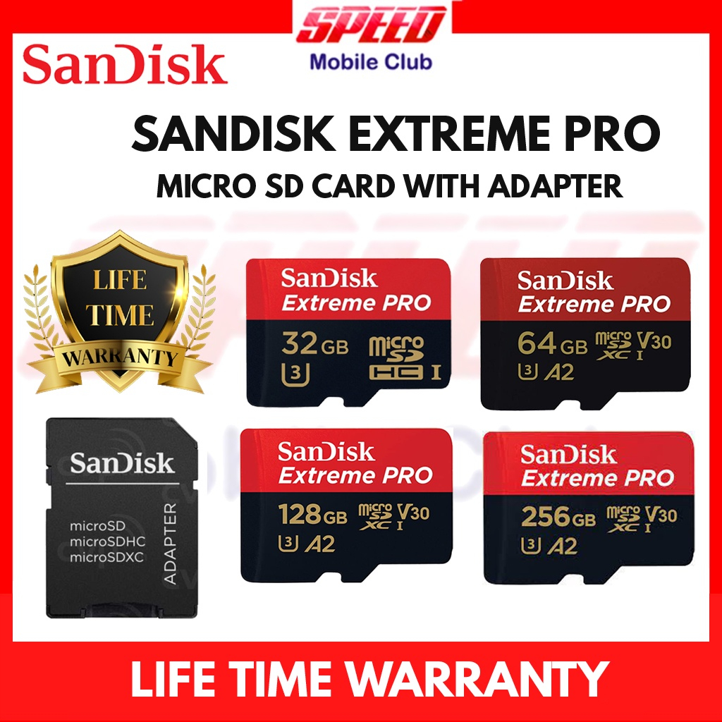 SanDisk Extreme Pro MicroSD Card With Adapter 256GB | 128GB | 64GB | 32GB | Life Time Warranty !!!