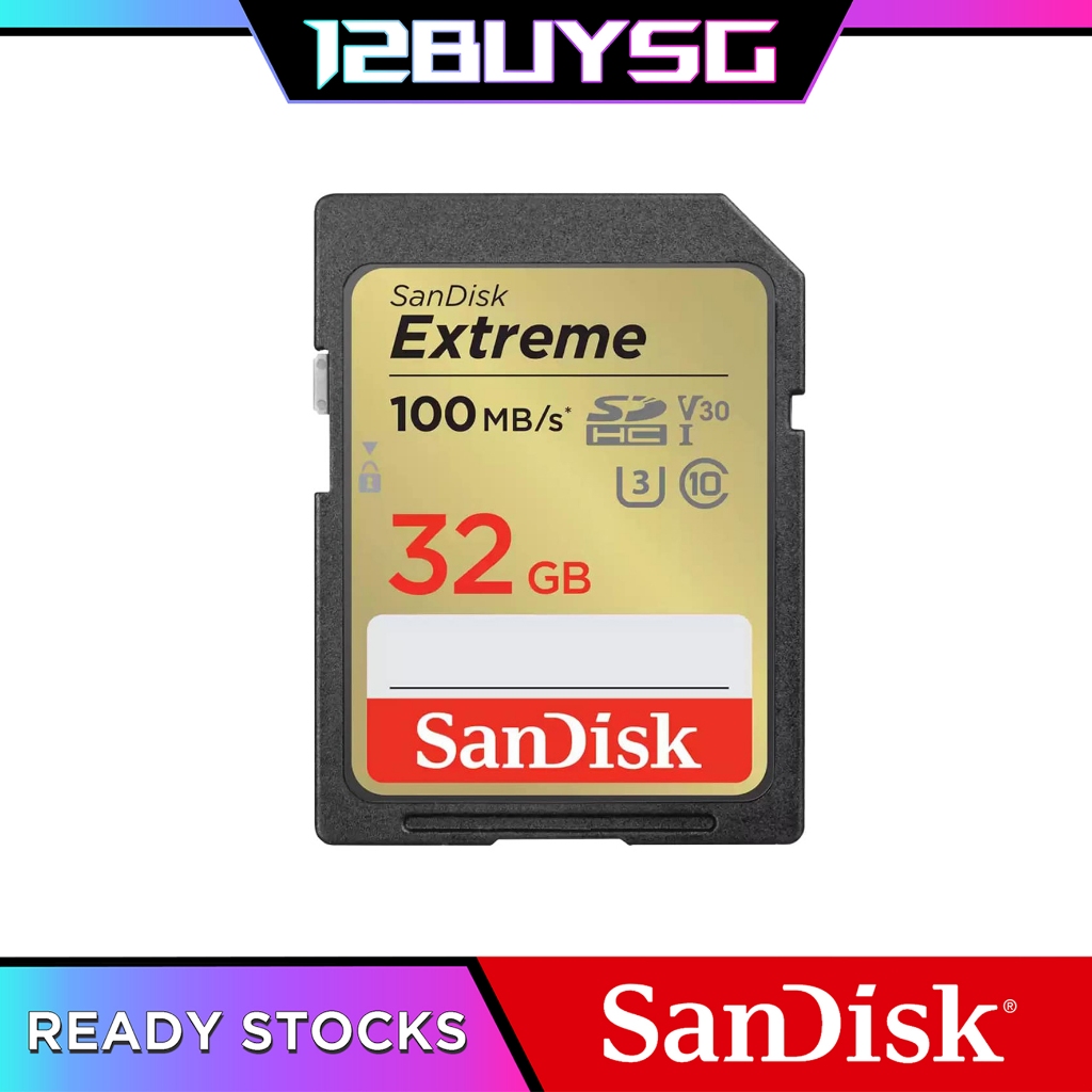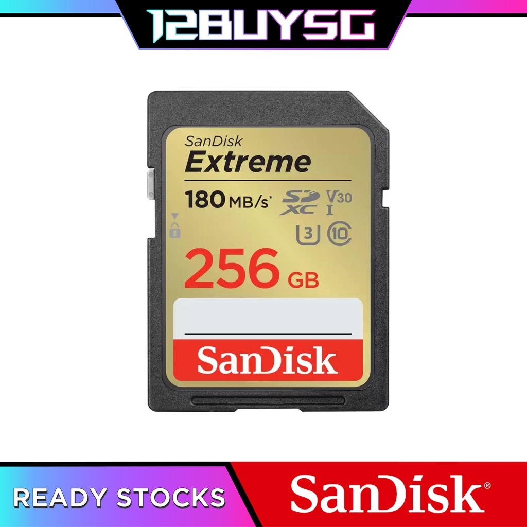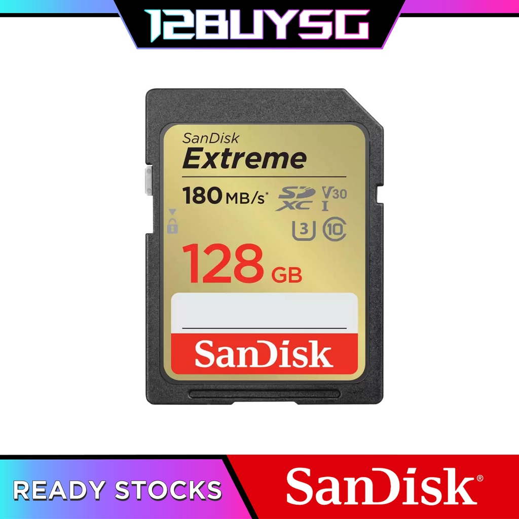 SanDisk Extreme SD Card 180MB/s 256GB 128GB 170MB/s 64GB 100MB/s 32GB 16GB DXVA DXVV DXVT DXNE 12BUY.SG