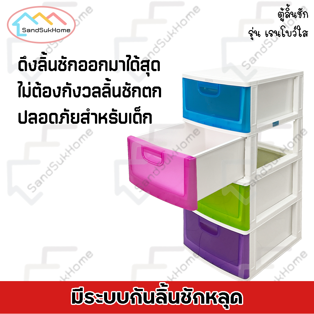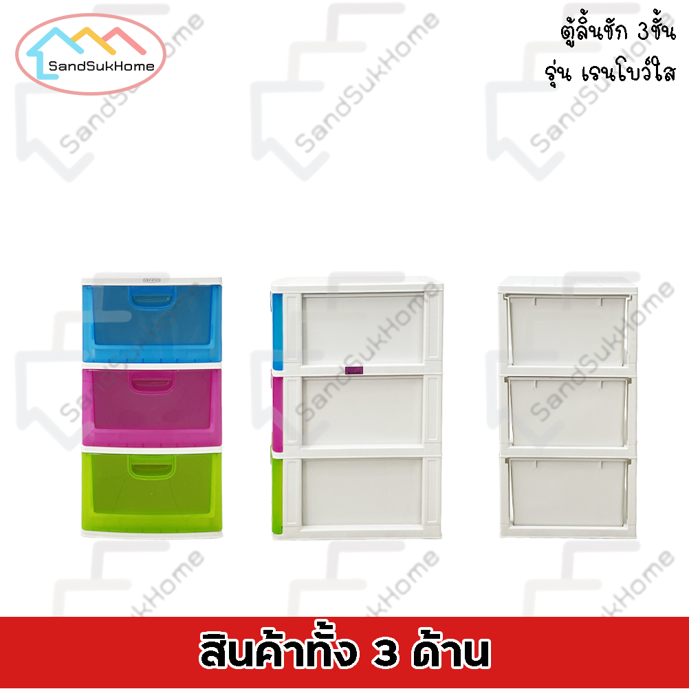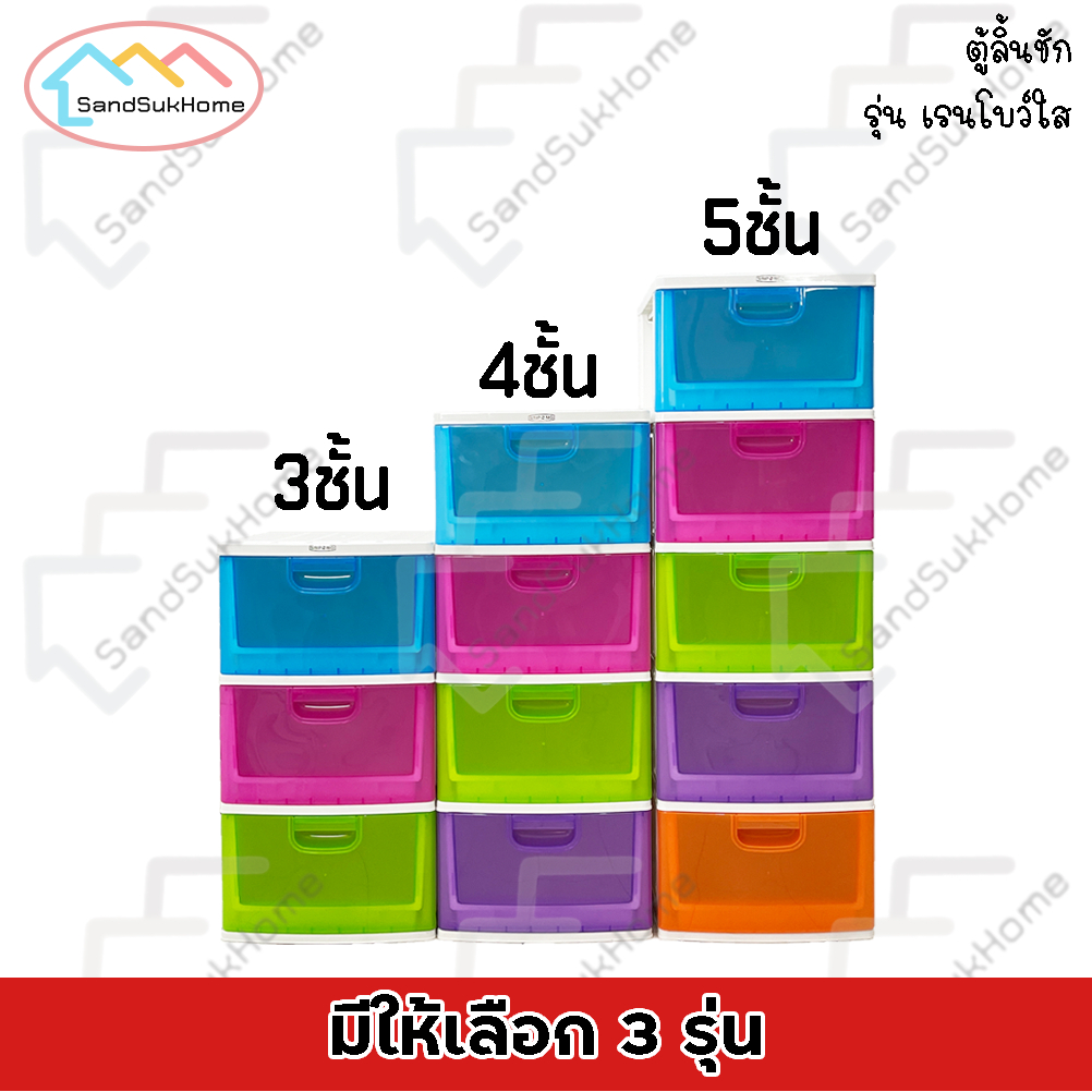 SandSukHome 3-Layer Plastic Drawer Cabinet Shoe Storage Box Shelf Rainbow Transparent Model