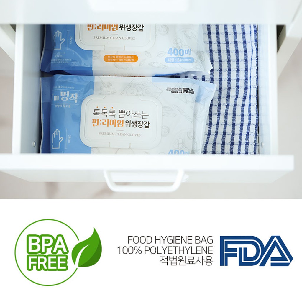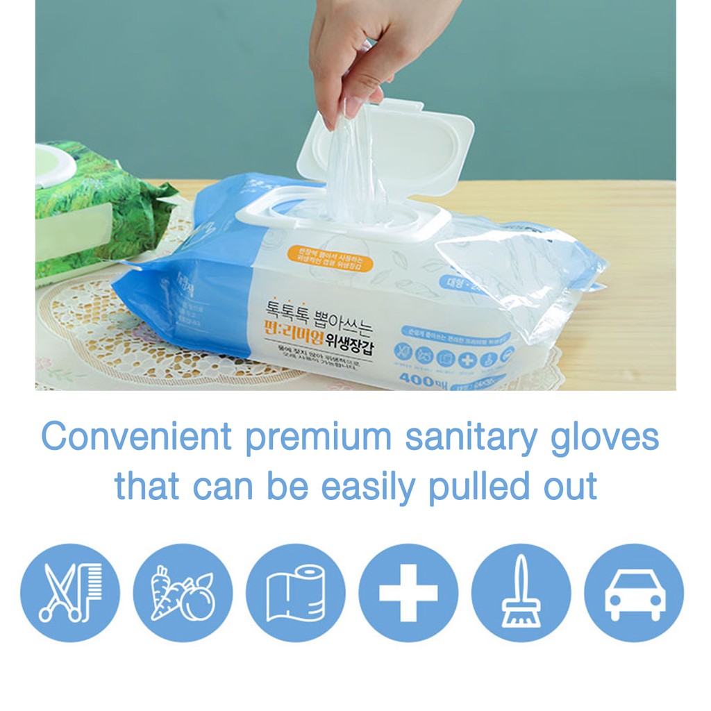 Sanitary Gloves 400PCS Large Clear Plastic Food Safe Sanitary Disposable Gloves from Korea