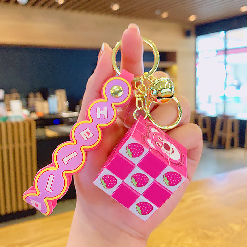 Sanrio DIY Rubik's Cube Key Chain Kuromi Melody Cinnamoroll Third-order Rubik's Cube Cute Couple Keychains Accessories for Girls Pendant Toy Birthday Gift