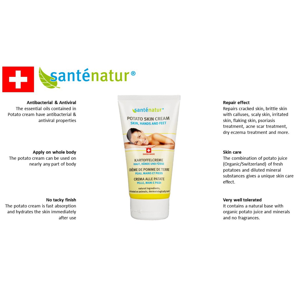 Santenatur Potato Skin Cream, Skin Care Made in Switzerland for relief of Eczema, Psoriasis, Dry and Itchy Skin
