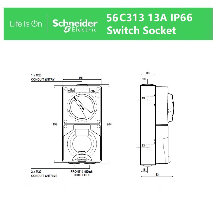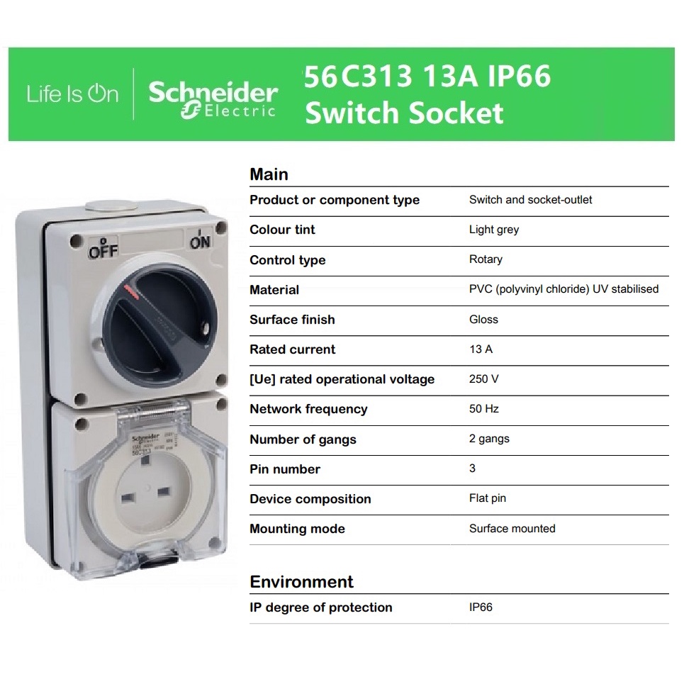 Schneider 56C313 13A Weatherproof Switch Socket IP66