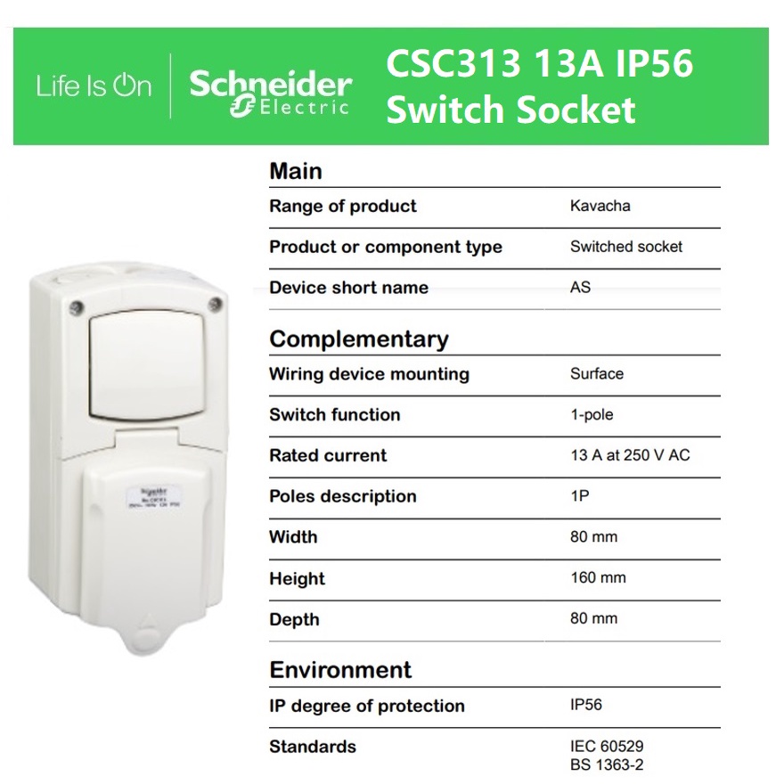 Schneider CSC313 13A IP56 Weatherproof Switch Socket