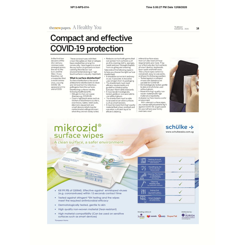 Schulke mikrozid® Universal Wipes 120 Sheet Disinfectant Wipes Perfume Free [Aurigamart Authorized Distributor]