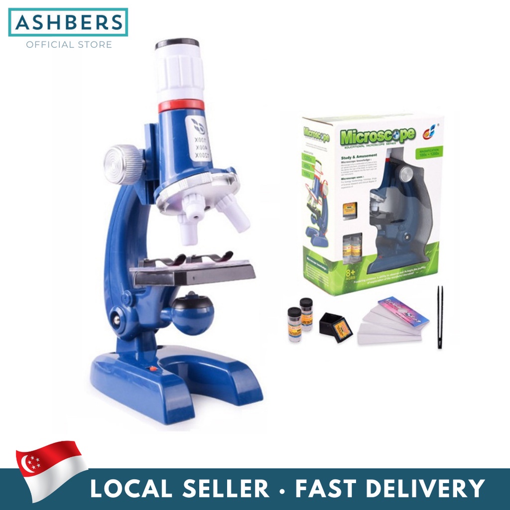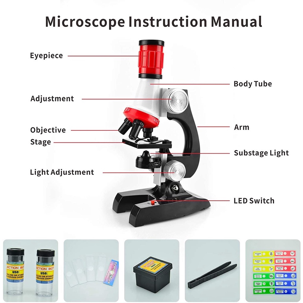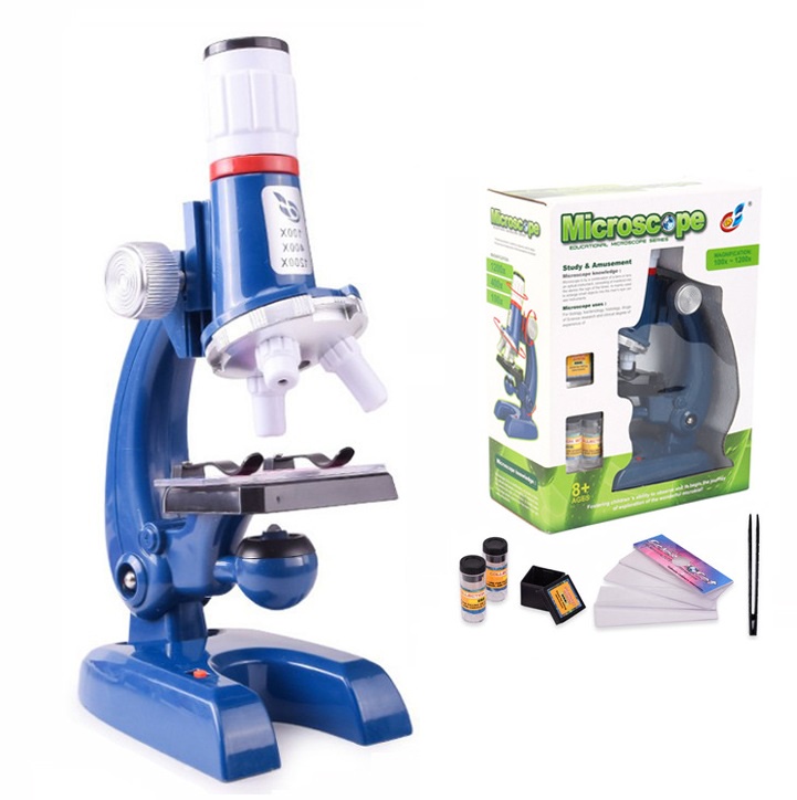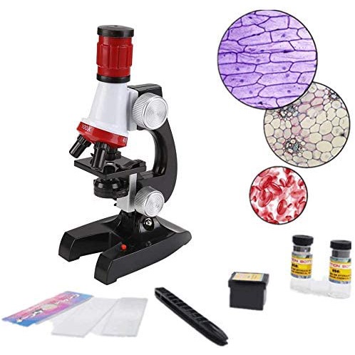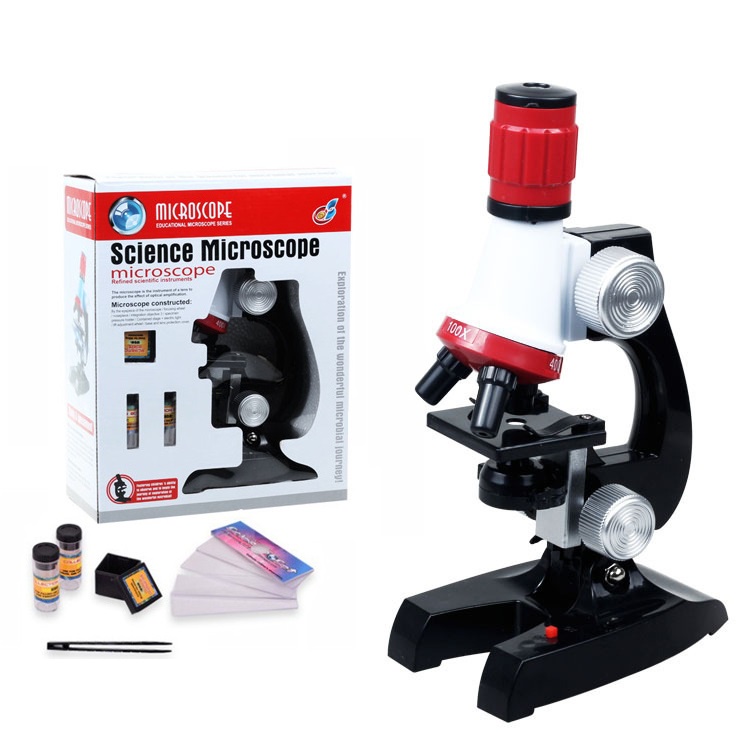 Science Kits for Kids Beginner Microscope with LED 100X 400X and 1200X Educational Toy Set Learning Toys In Red Or Blue