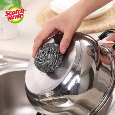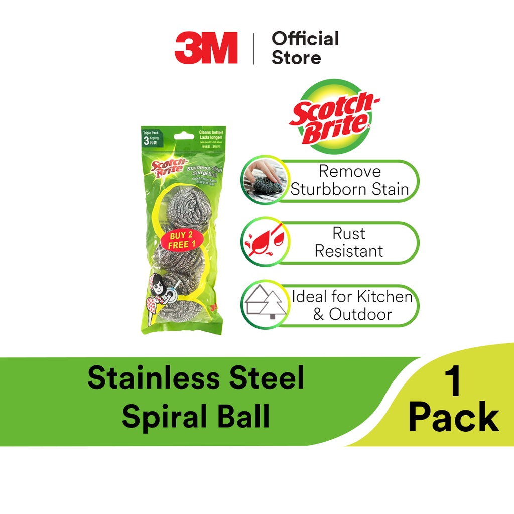 Scotch Brite Stainless Steel Metallic Durable Spiral Ball - Rust Resistant Stain Removal Cleaning Tool (3 Pcs/Pack)