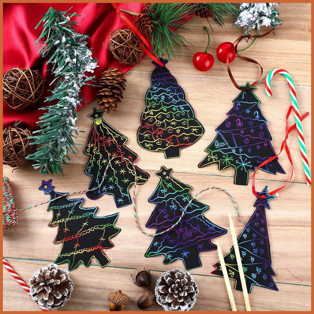 Scratch Paper Art Ornaments Kit Christmas DIY Art Craft Scratch off Paper Cards Ornaments Christmas Decorations cingsg