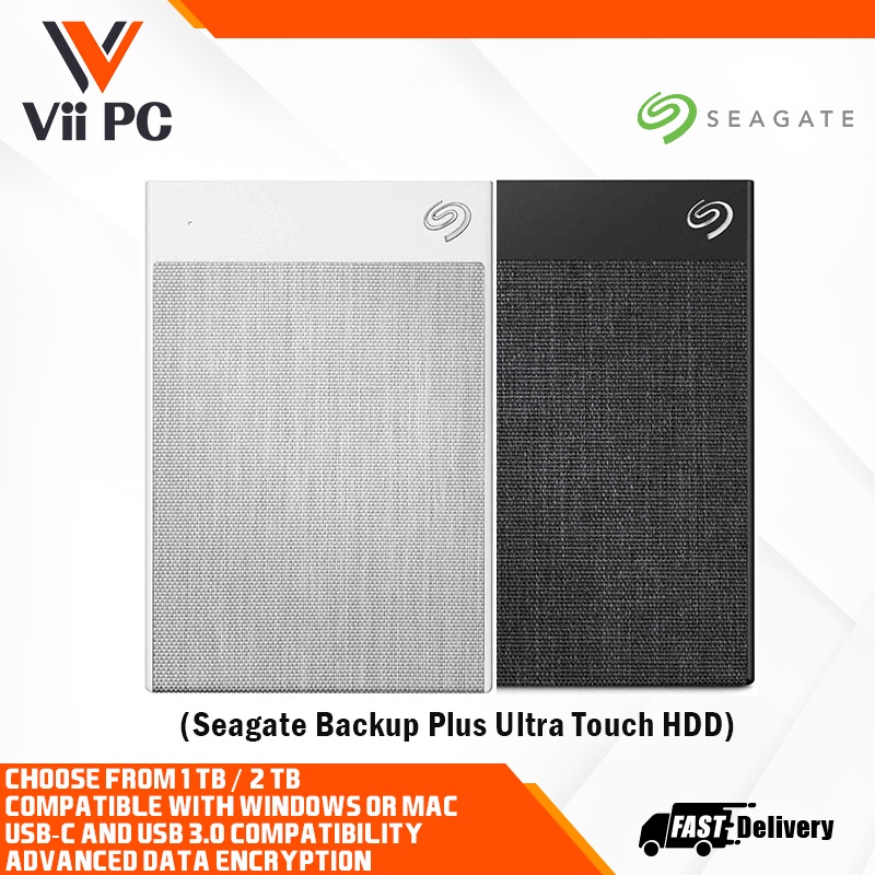 Seagate Backup Plus Ultra Touch External Hard Disk / Hard Drive / HDD / USB-C / USB 3.0 / Password Protection (1TB)/2TB)