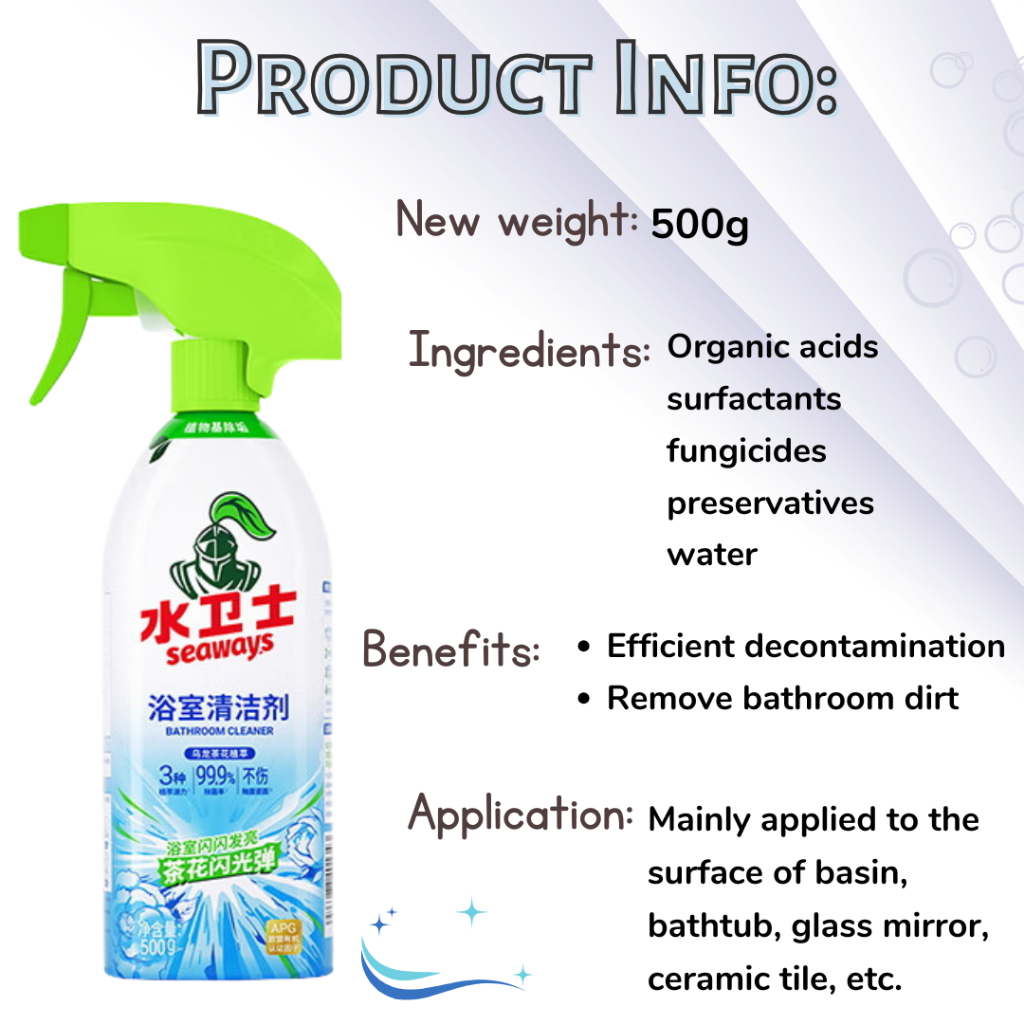 Seaways Bathroom Spray Cleaner 500g | Toilet Cleaner | FREE spray head (green) | Bundle MP13